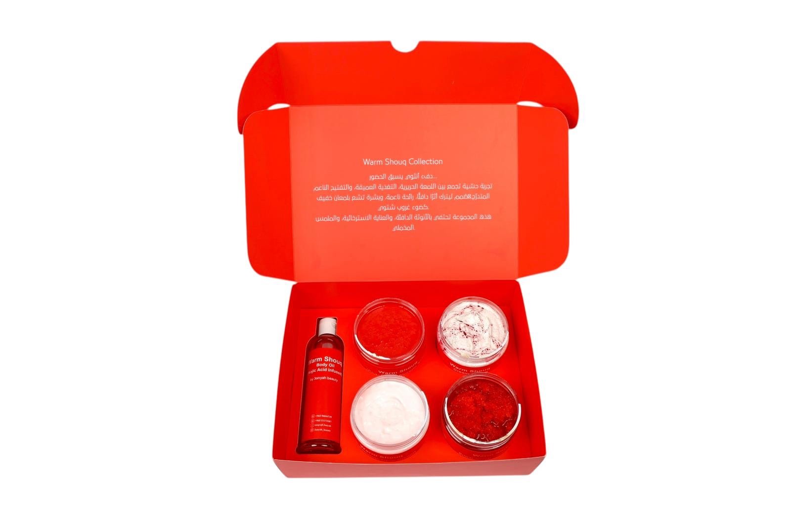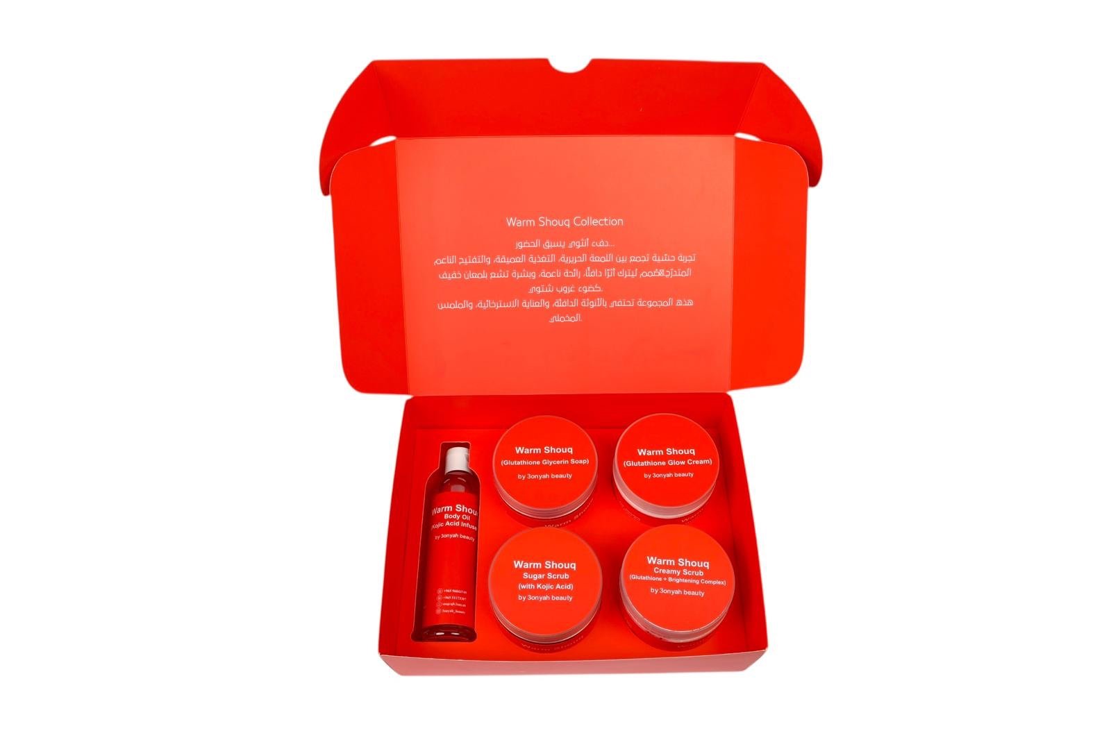 بوكس ورم شوق من أجمل وأنجح ماصنعت عبارة عن صابونيه وسنفرة وكريم وبدى أويل يعمل على التفتيح من درجتين لثلاث درجات ويعطى ترطيب عميق يستمر لثاني يوم